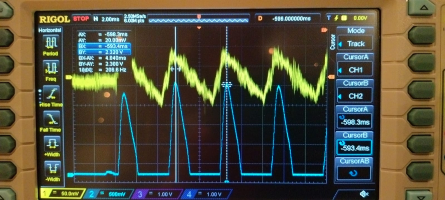 The difference between the input and output signals is night and day. It goes from noisy and weak, to strong and clear. (Note that the voltage scale of the two signals is very different – the output (blue) signal is MUCH stronger than the input).